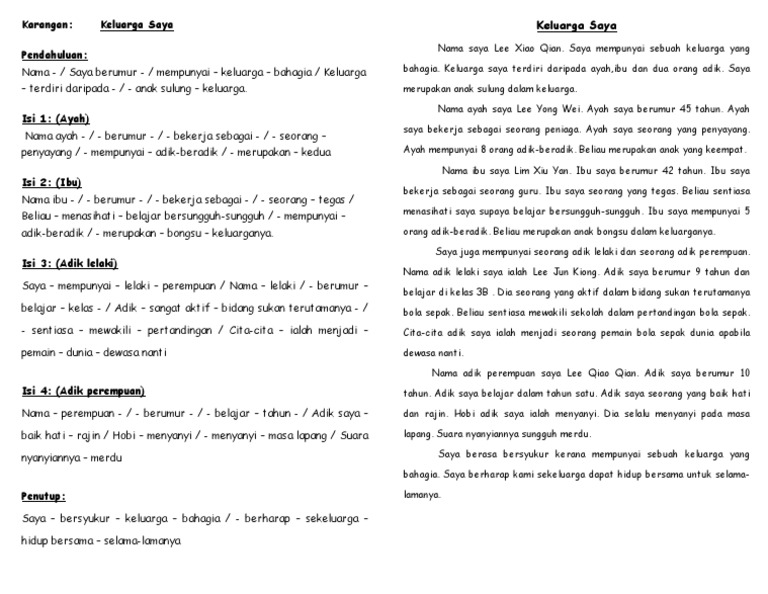 Ibu Saya Contoh Karangan Tahun 3 Zafrina Keluarga Saya Karangan Belajar