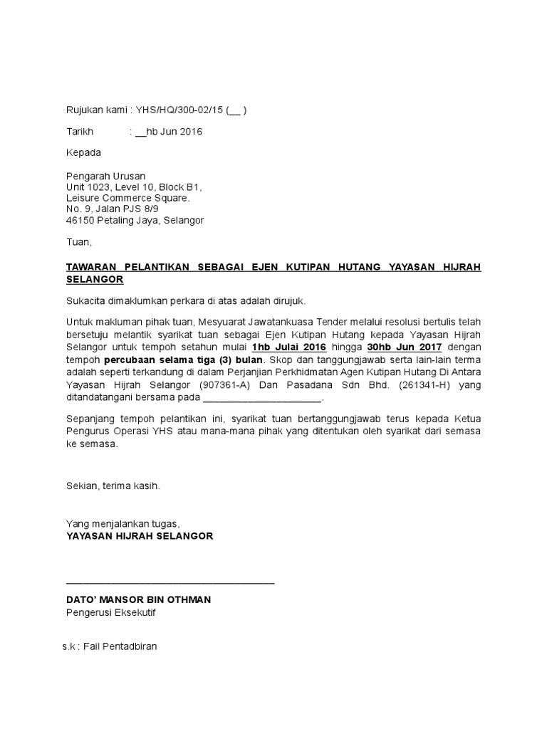 Surat Perlantikan Pasadana Ejen Kutipan Hutang Pdf